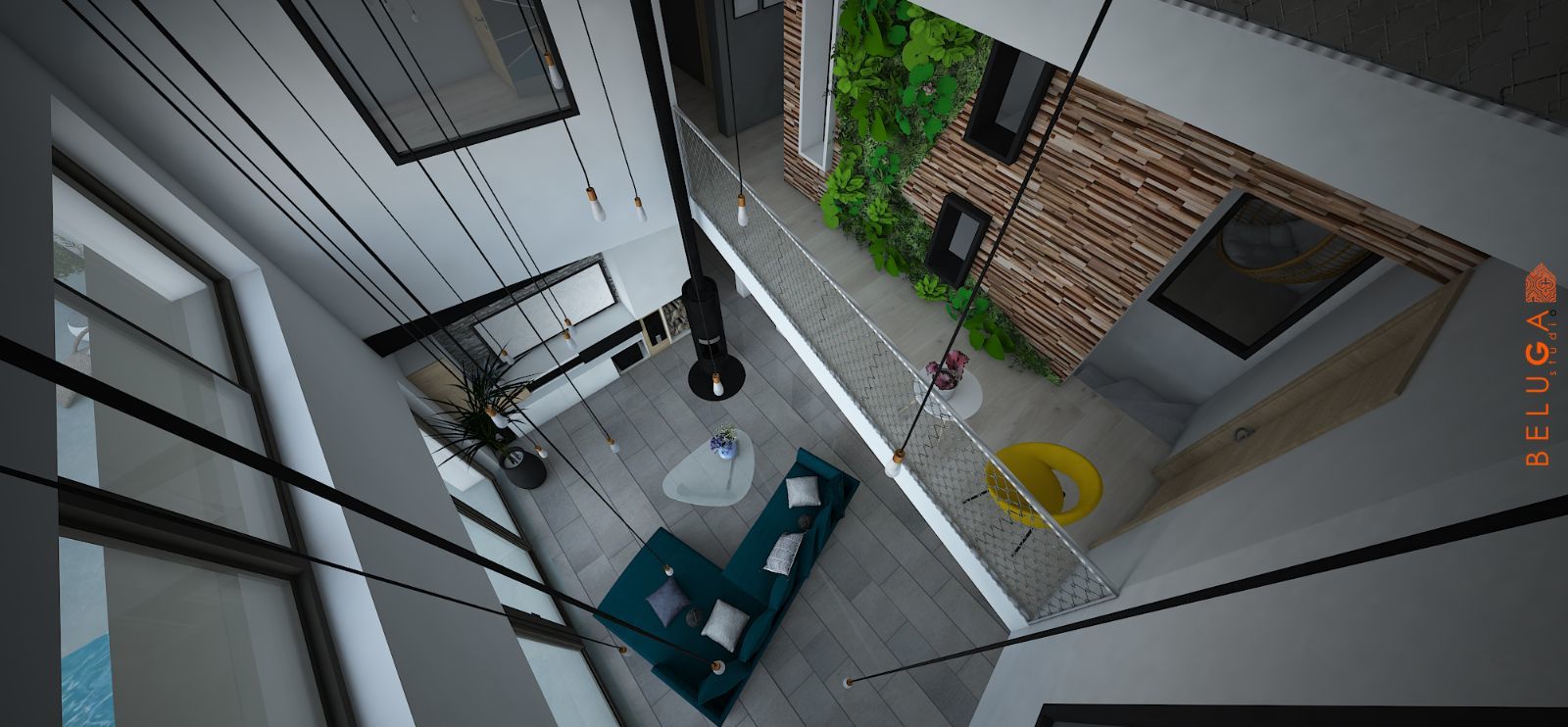 Jeux de circulations avec mezzanines donnant sur l'espace de vie.