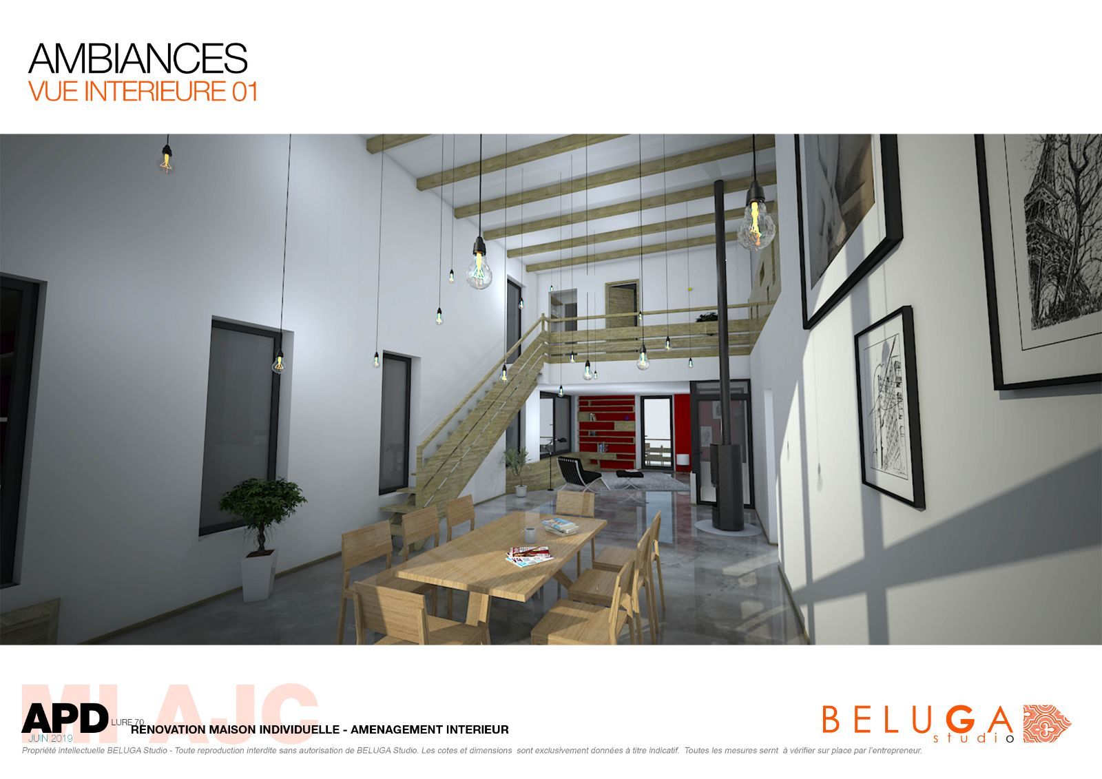 Aménagement intérieur d'une maison individuelle en échos avec la réhabilitation de l'église de TAVEY.