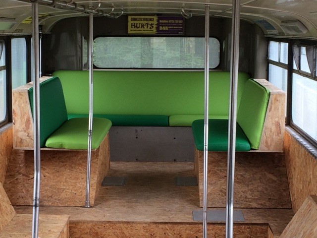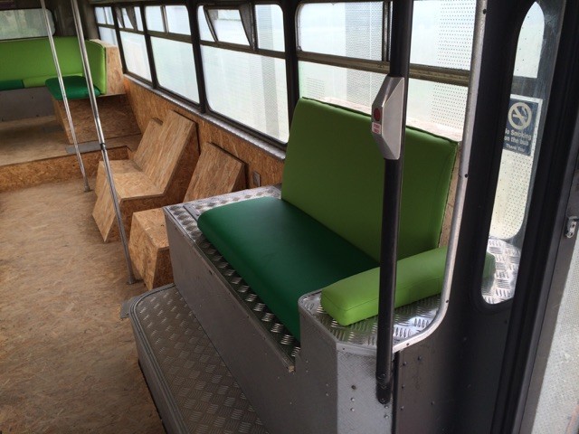 Réaménagement d'un ancien bus anglais en chambres d'hôtes, espaces de jeux pour jeunes: