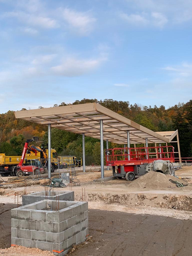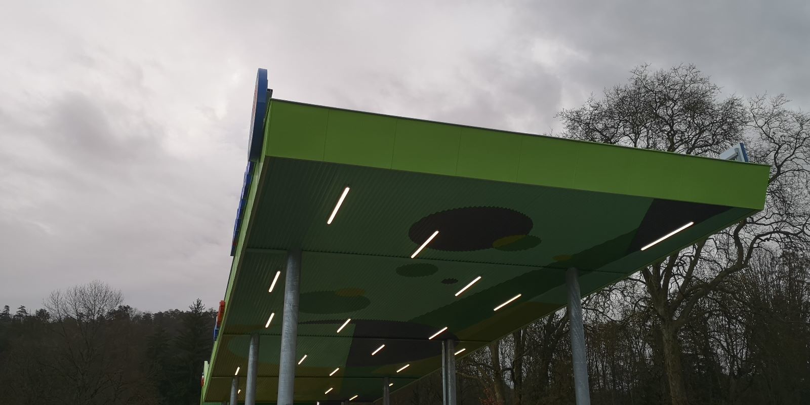 L'auvent développe ainsi une grande surface couvrante afin de protéger au mieux les futurs utilisateurs.
