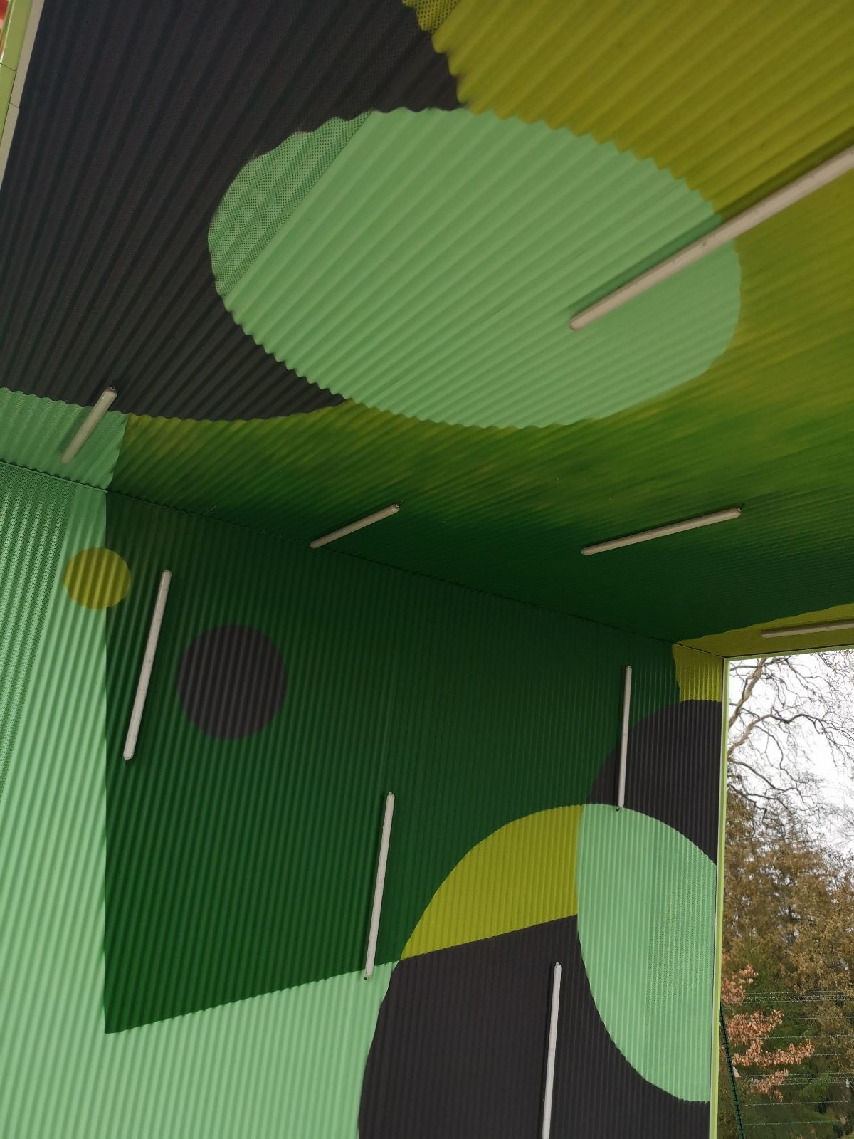 La structure principale est pensée en bois pour respecter l'environnement et est bardée de tôle colorée pour faciliter l'entretien.