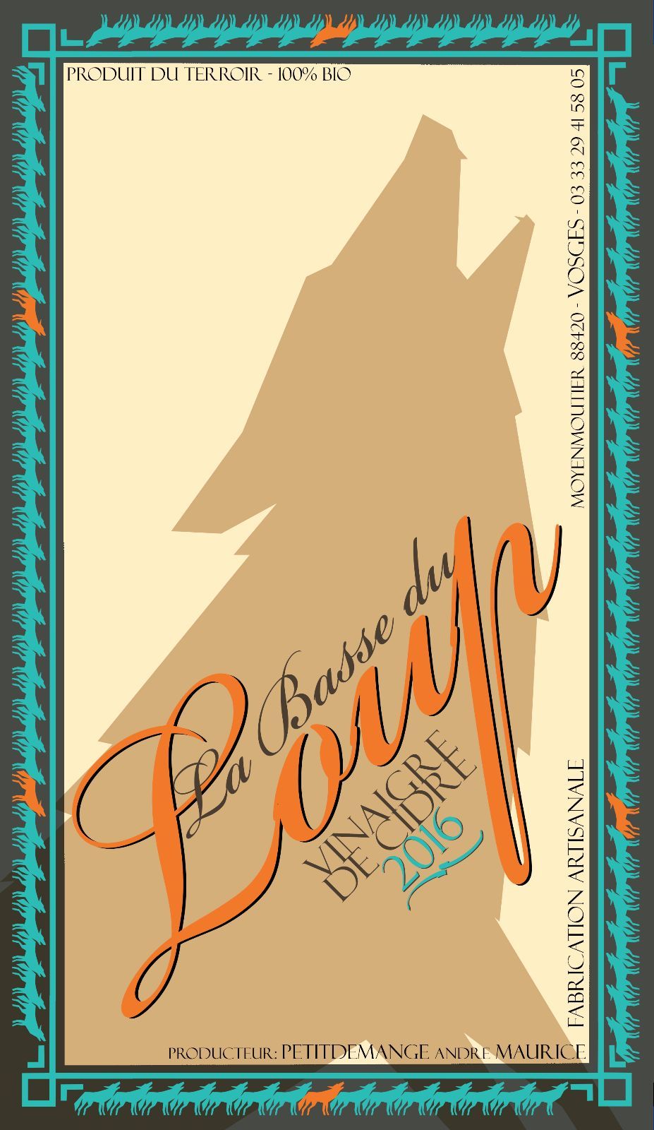 Réalisation d'étiquettes pour pruduction artisanale de bouteilles de vinaigre de pomme.