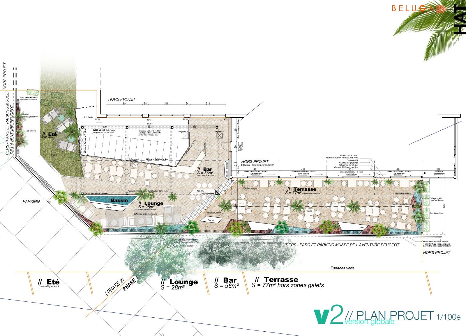 Trame végétale et minérale qui rythme les différents espaces.