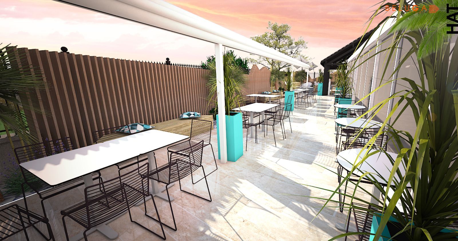 Aménagement d'espaces extérieurs d'un hotêl.